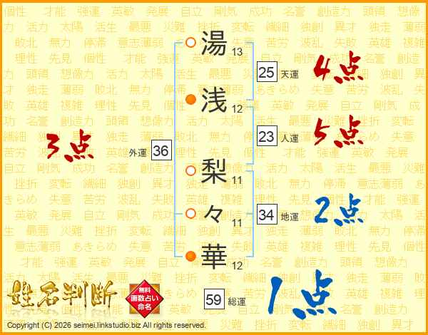 湯浅梨々華さんの天運は25画の4点!