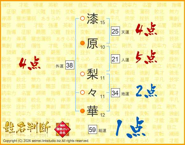 漆原梨々華さんの天運は25画の4点!