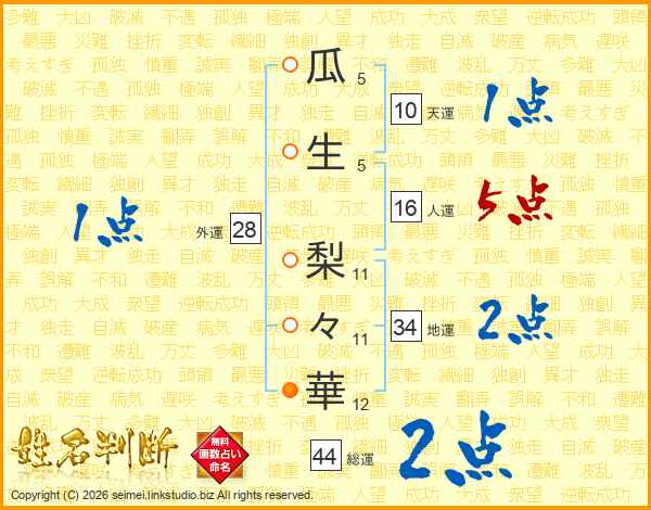 瓜生梨々華さんの総運は44画の2点!