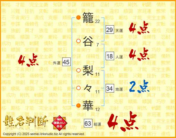 籠(22画)谷(7画) 梨(11画)々(11画)華(12画)