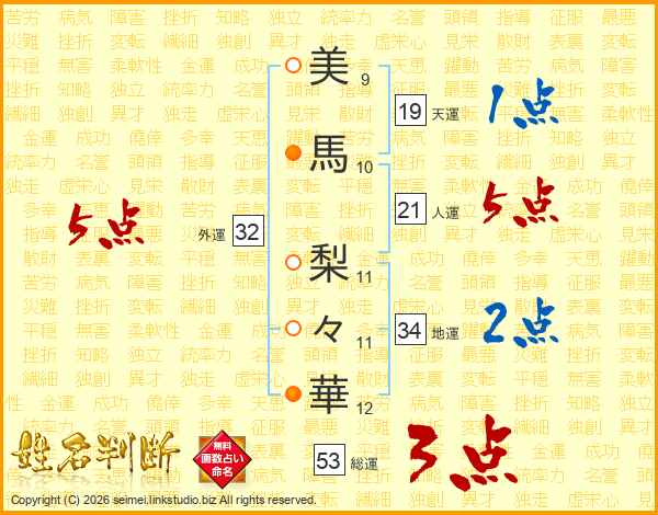 美馬梨々華さんの外運は32画の5点!