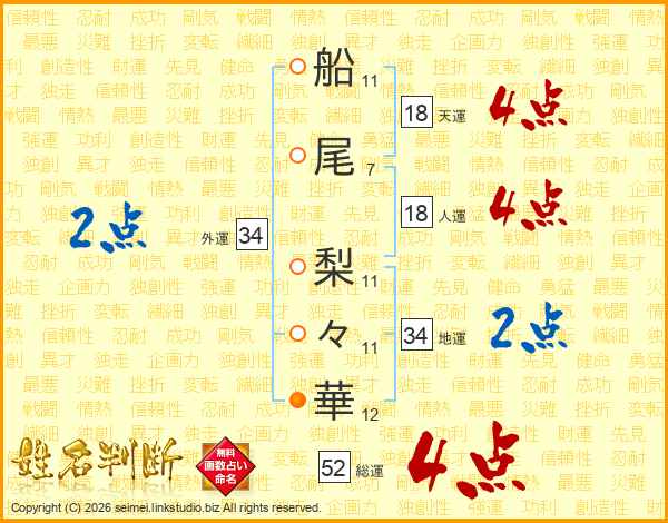 船尾梨々華さんの総運は52画の4点!