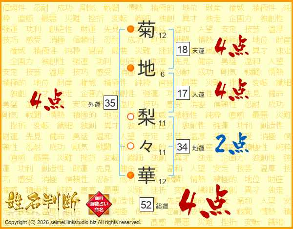 菊地梨々華さんの総運は52画の4点!