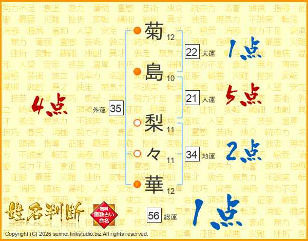 菊島梨々華さんの総運は56画の1点!