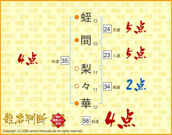 蛭間梨々華さんの総運は58画の4点!