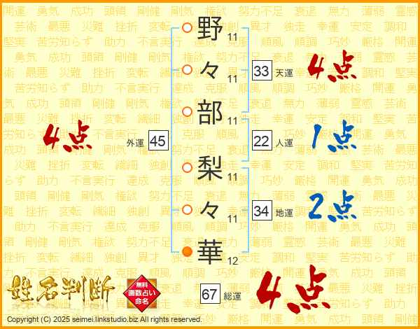 野々部梨々華さんの天運は33画の4点!