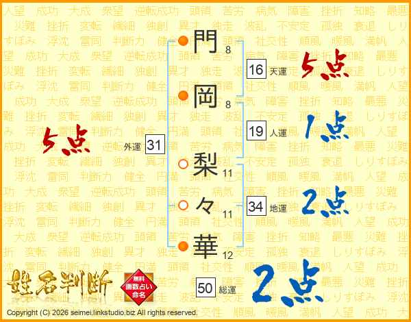門岡梨々華さんの外運は31画の5点!