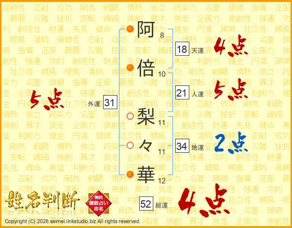 阿倍梨々華さんの総運は52画の4点!