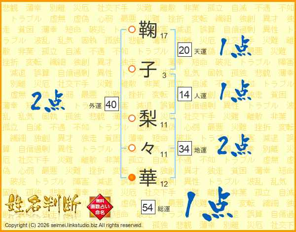 鞠(17画)子(3画) 梨(11画)々(11画)華(12画)