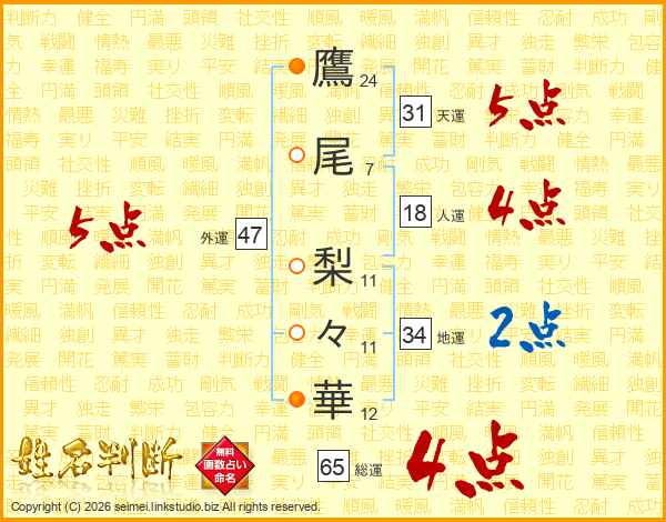 鷹尾梨々華さんの総運は65画の4点!