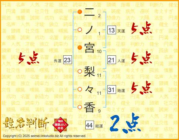 二ノ宮梨々香さんの総運は44画の2点!