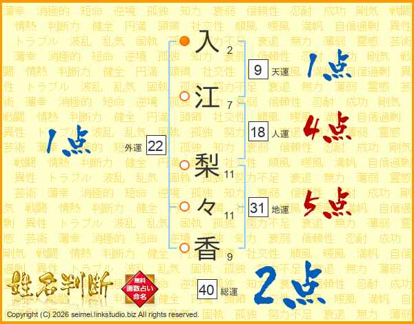 入江梨々香さんの総運は40画の2点!