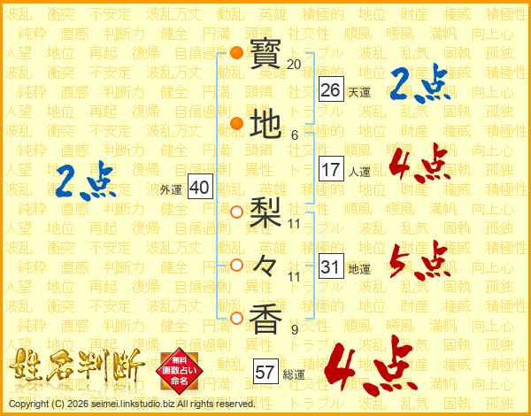 寳地梨々香さんの天運は26画の2点!
