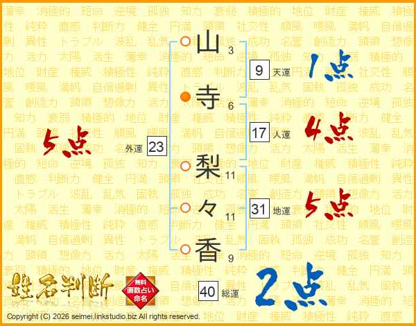 山寺梨々香さんの総運は40画の2点!