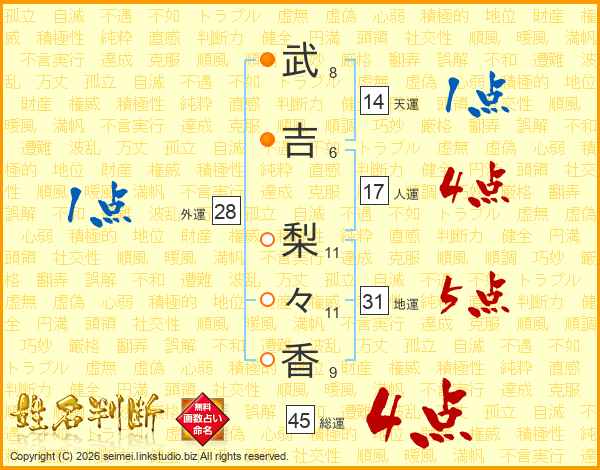 武吉梨々香さんの総運は45画の4点!