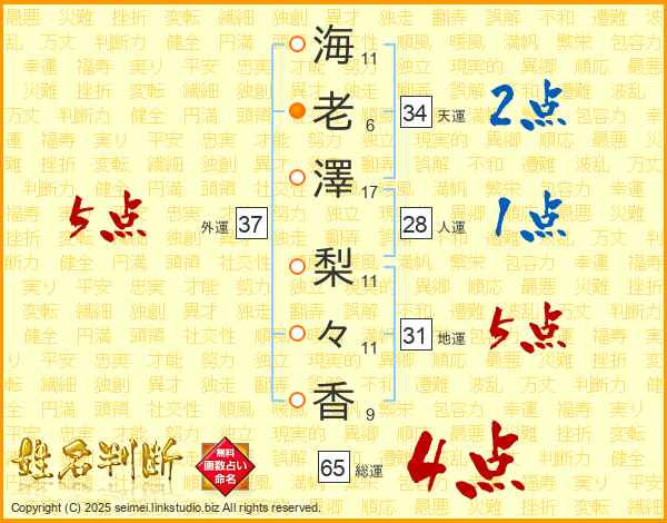 海老澤梨々香さんの総運は65画の4点!