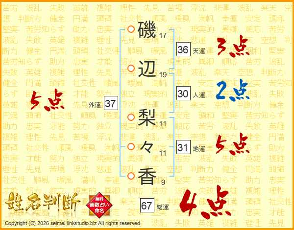 磯辺梨々香さんの総運は67画の4点!