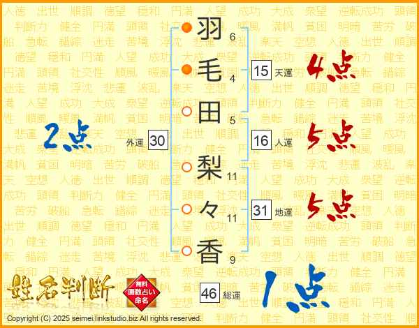 羽毛田梨々香さんの総運は46画の1点!
