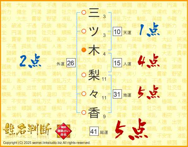三ツ木梨々香さんの総運は41画の5点!