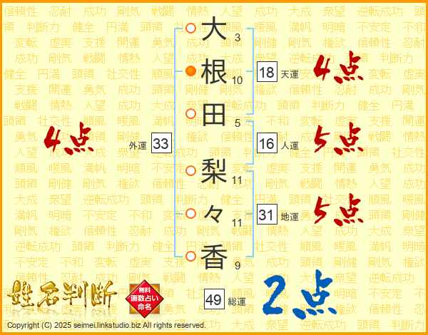 大根田梨々香さんの外運は33画の4点!