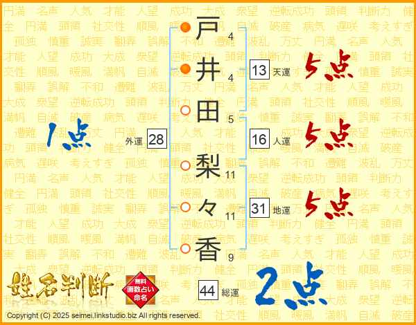 戸(4画)井(4画)田(5画) 梨(11画)々(11画)香(9画)