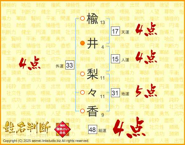 楡井梨々香さんの外運は33画の4点!