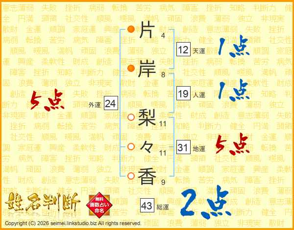 片岸梨々香さんの総運は43画の2点!
