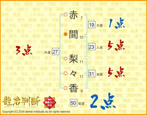 赤間梨々香さんの総運は50画の2点!