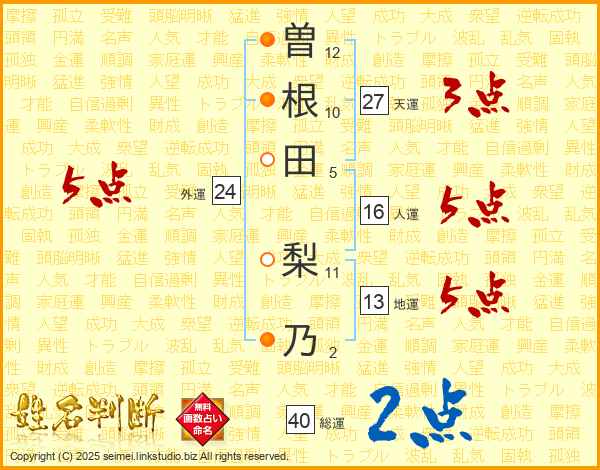 曽根田梨乃さんの天運は27画の3点!
