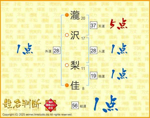 瀧沢梨佳さんの天運は37画の5点!