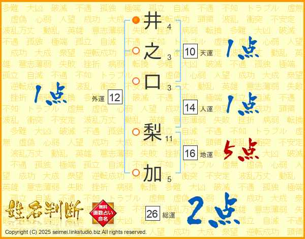 井(4画)之(3画)口(3画) 梨(11画)加(5画)