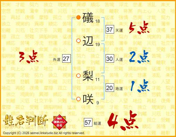 礒(18画)辺(19画) 梨(11画)咲(9画)
