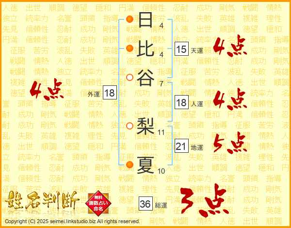 日(4画)比(4画)谷(7画) 梨(11画)夏(10画)