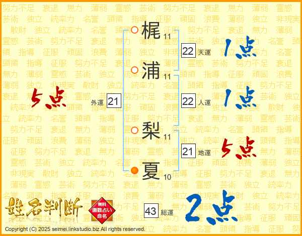 梶浦梨夏さんの外運は21画の5点!