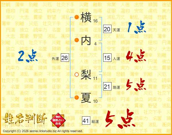 横内梨夏さんの総運は41画の5点!