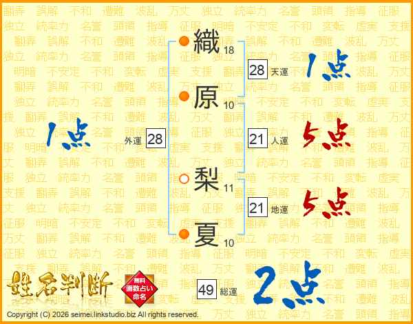 織原梨夏さんの総運は49画の2点!