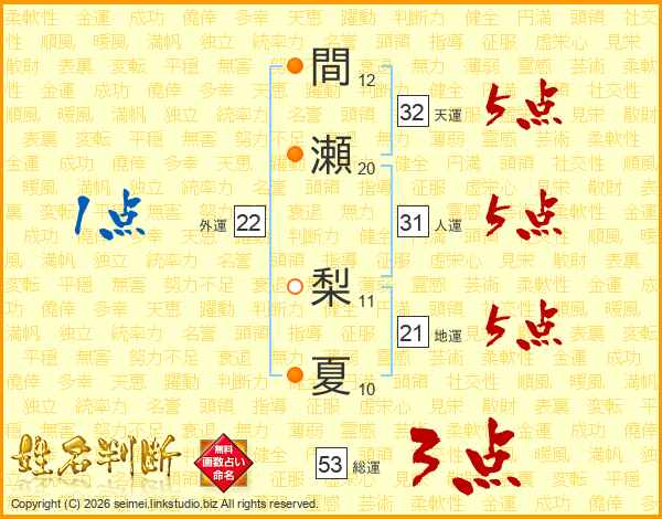 間瀬梨夏さんの総運は53画の3点!