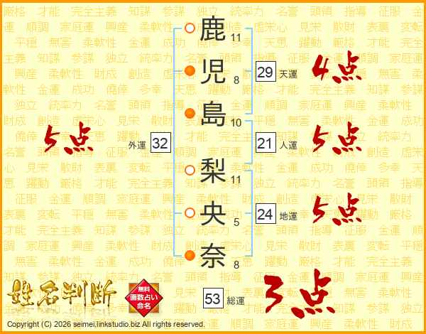 鹿児島梨央奈さんの総運は53画の3点!