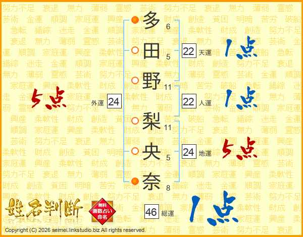 多田野梨央奈さんの総運は46画の1点!