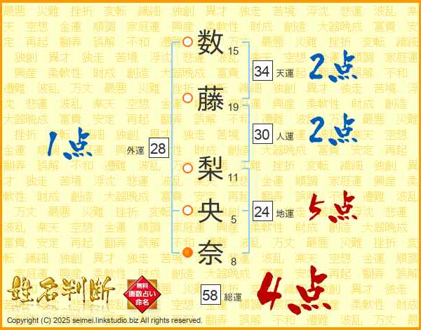 数藤梨央奈さんの総運は58画の4点!