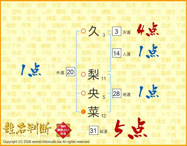久梨央菜さんの総運は31画の5点!