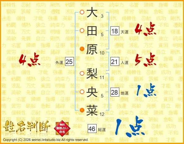 大田原梨央菜さんの総運は46画の1点!