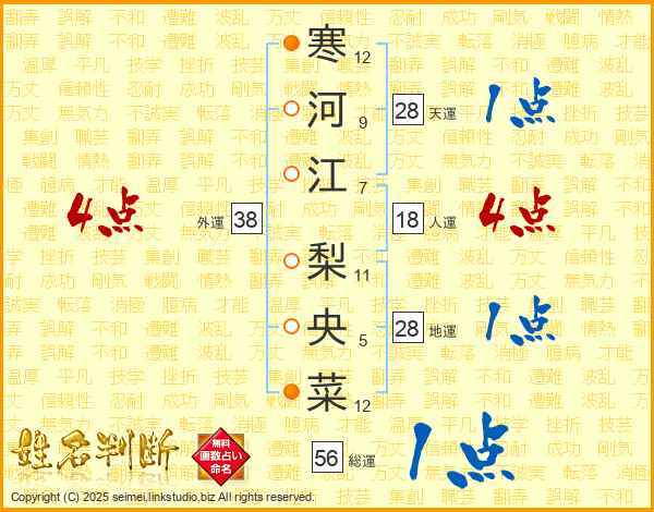 寒河江梨央菜さんの外運は38画の4点!