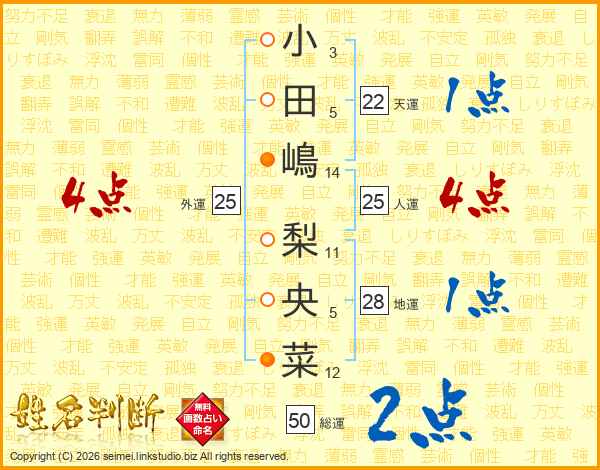 小田嶋梨央菜さんの人運は25画の4点!