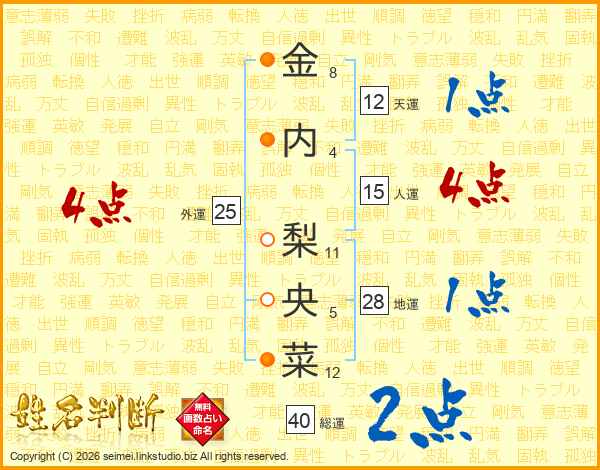金内梨央菜さんの総運は40画の2点!