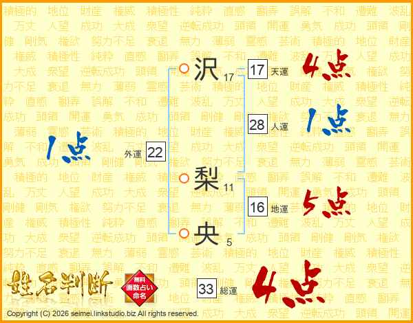 沢梨央さんの総運は33画の4点!