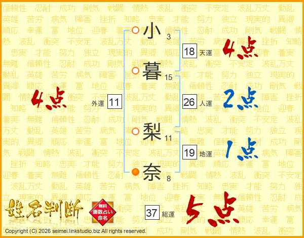 小暮梨奈さんの総運は37画の5点!