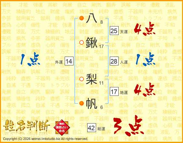 八鍬梨帆さんの天運は25画の4点!