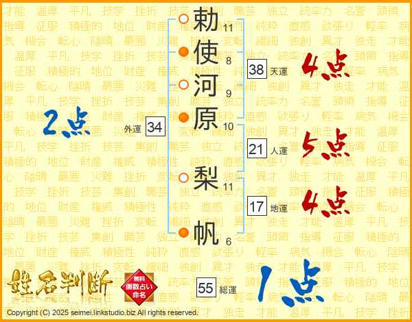 勅使河原梨帆さんの天運は38画の4点!