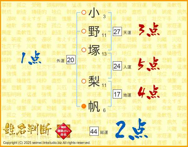 小野塚梨帆さんの総運は44画の2点!